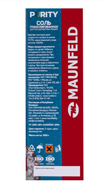 MAUNFELD MDS1500G соль для посудомоечных машин белый