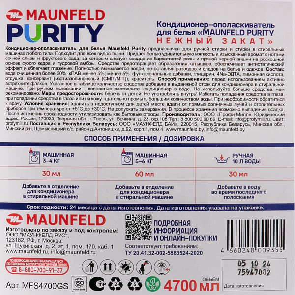 MAUNFELD Purity MFS4700GS кондиционер-ополаскиватель для белья Нежный закат 4,7л