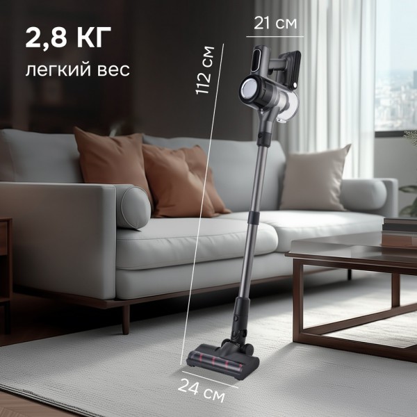 Литий‑ионный аккумулятор даёт до 40 минут автономной работы в экономичном режиме. Убирайтесь в любой зоне дома — от дальних углов до лестниц и балконов — без привязки к розетке.