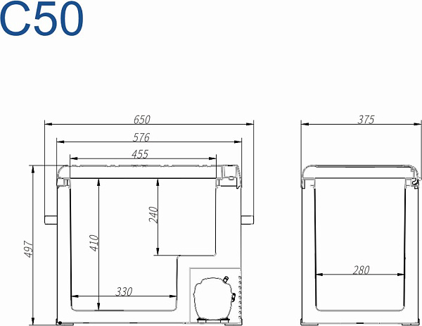 Автомобильный холодильник Alpicool C50 (12/24) имеет реверсивную дверцу (направление открывания можно менять). Дверца надежно фиксируется магнитом. Такие функциональные возможности обеспечат удобную установку холодильника внутри салона автомобиля.