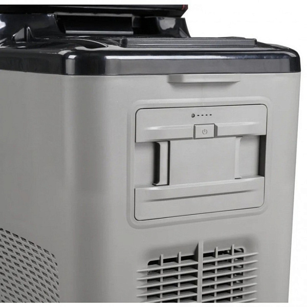 Корпус автохолодильника выполнен из прочного и легкого материала и имеет два крепежа для ремня, что делает его удобным для транспортировки. Данная модель может работать как от сети 12/24 В, так и от сети переменного тока 110-240 В (адаптер на 220В приобретается отдельно). Специальный разъём