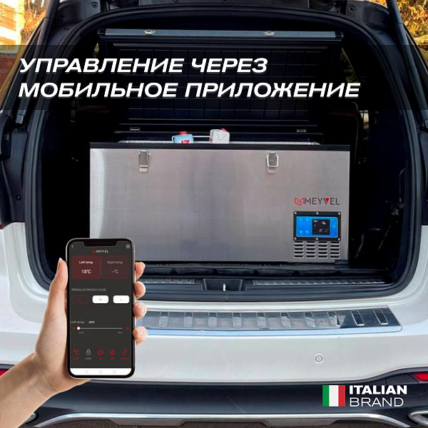 Дизайнеры и инженеры Meyvel позаботились о Вашем комфорте и разработали полностью русифицированное мобильное приложение MEYVEL CAR FRIDGE. Скачайте его бесплатно в App Store или Google Play Store и подключитесь к своему автохолодильнику Meyvel. Вы можете управлять устройством всего лишь одним касанием. Включайте и отключайте устройство, меняйте и настраивайте температурный режим прямо в дороге.