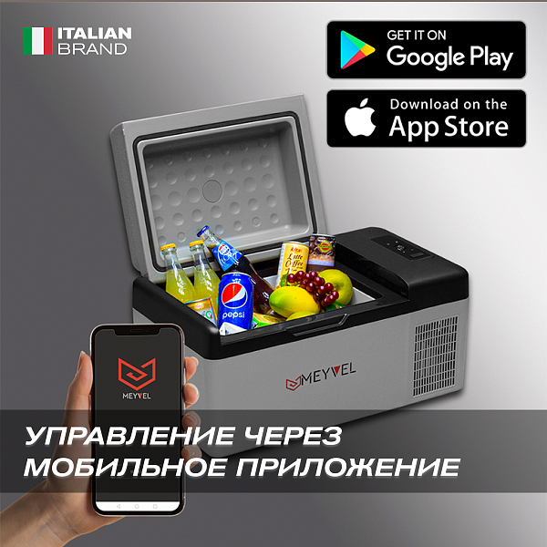 Дизайнеры и инженеры Meyvel позаботились о Вашем комфорте и разработали мобильное приложение «MEYVEL CAR FRIDGE», благодаря которому Вы можете управлять устройством всего лишь одним касанием. Включайте и отключайте устройство, меняйте и настраивайте температурный режим прямо в дороге. Теперь, когда управление авто холодильником стало простым и понятным, Вам и Вашим близким остается лишь наслаждаться путешествием.