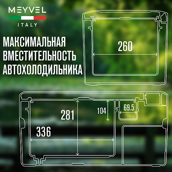 Компрессорный автохолодильник Meyvel AF-G25 – это компактный холодильник, который очень прост в использовании и с легкостью устанавливается в любом удобном месте Вашего транспорта, обеспечивая быстрый доступ к любимым продуктам. Кроме того, для него всегда найдется место не только в грузовых автомобилях, но и в микроавтобусах, катерах, автодомах и кемперах. Ключевой технической особенностью этой модели является тихий высокопроизводительный компрессор, имеющий напряжение 12/24 B с системой защиты от разгерметизации. Благодаря оптимизированному программному обеспечению и регулируемой скорости вращения, Вы можете эффективно поддерживать нужную температуру продуктов и напитков в дороге и на природе. Благодаря верхнему расположению испарителя холодный воздух распределяется более равномерно, а охлаждение происходит максимально быстро.