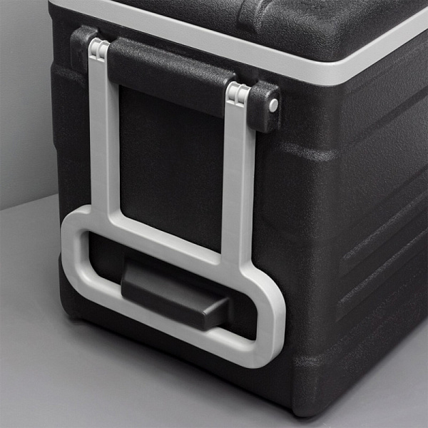 Дверца автохолодильника закрывается на автоматическую защёлку, что исключает случайное открытие и потерю холода изнутри.