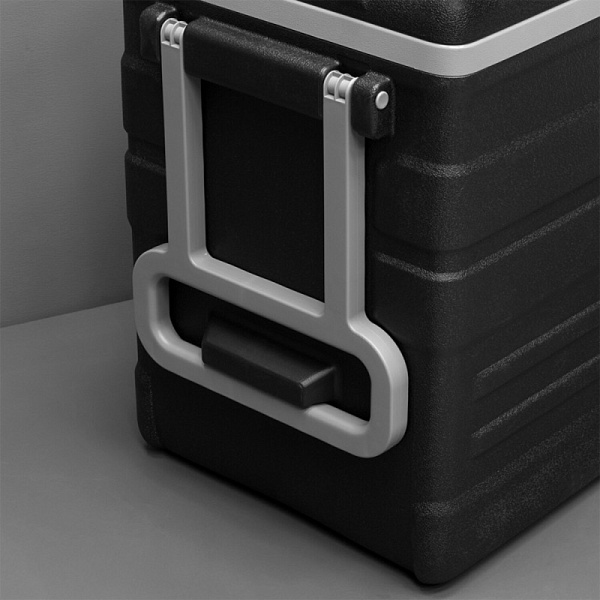 Дверца автохолодильника закрывается на автоматическую защёлку, что исключает случайное открытие и потерю холода изнутри.