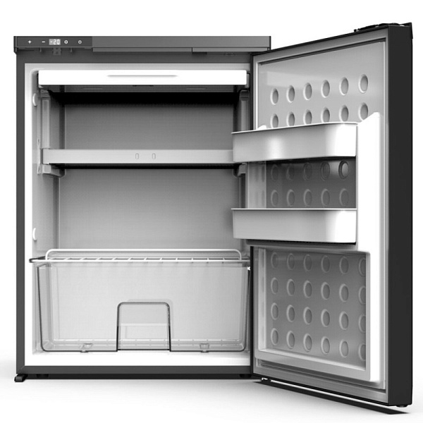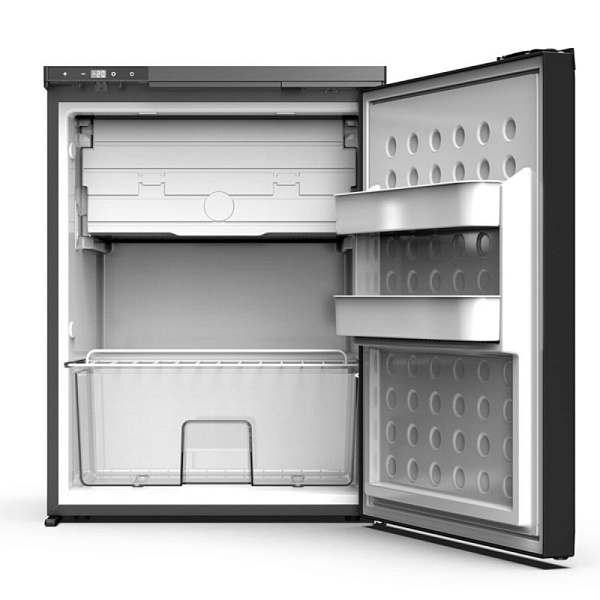 Внутренняя камера холодильника имеет специальный поддон для хранения овощей или фруктов, а также съемные дверные полки. Интересной возможностью модели является съемная морозильная камера. Морозильная камера состоит из двух термопластин, которые при Вашем желании можно снять для увеличения внутреннего объема холодильника.