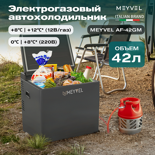 Автохолодильник Meyvel AF-42GM — идеальное решение для тех, кто стремится наслаждаться комфортом и лакомиться свежими продуктами в любых условиях. Этот удивительный аппарат может работать от разных источников энергии: от бортовой сети 12 В, обычной розетки 220В и даже от газа (пропана или бутана).