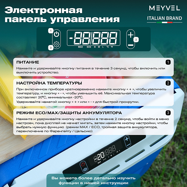 Автохолодильник Meyvel AF-M30 — это надежное и функциональное устройство, созданное для тех, кто часто путешествует или проводит время на природе. Этот бюджетный и удобный холодильник обеспечит сохранность продуктов и напитков, независимо от условий.