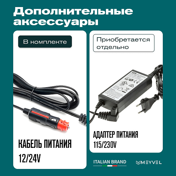 Meyvel AF-M30 поддерживает несколько источников питания. Вы можете использовать его в автомобилях, подключив к сети 12/24 В через прикуриватель, или приобрести дополнительный кабель питания на 220 В, чтобы включать устройство в домашних условиях.