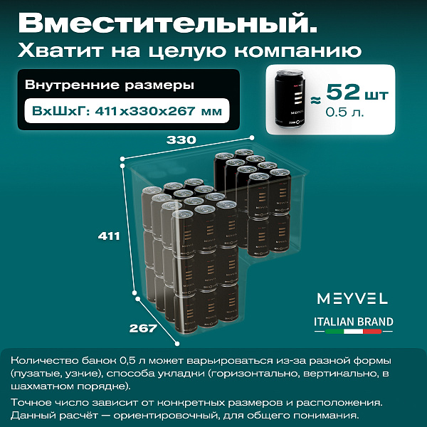 У Meyvel AF-N30 компактный корпус, который легко помещается в багажнике или на заднем сиденье, удобные ручки по бокам, чтобы переносить холодильник без лишних усилий, а крышка надёжно фиксируется защёлкой, не открываясь в пути даже на кочках.