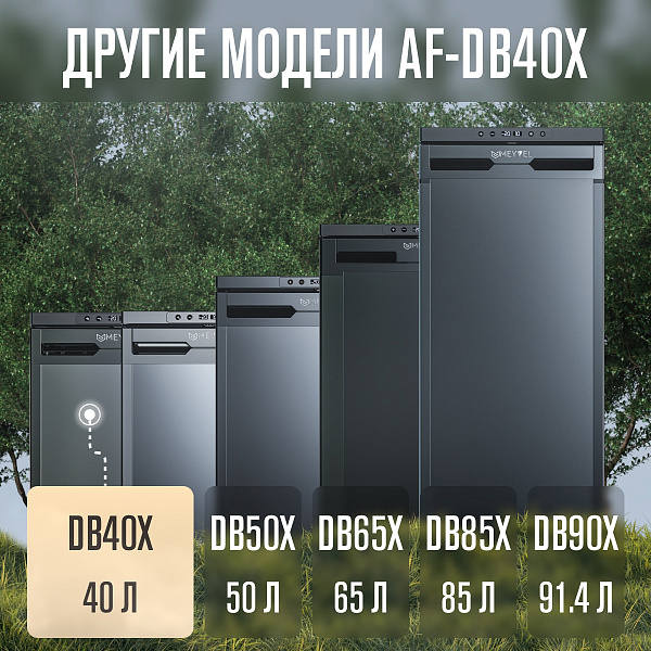 Одной из популярных моделей является встраиваемый автохолодильник AF-DB40X, предназначенный для монтажа в автомобилях различных типов, включая микроавтобусы, грузовики, яхты и автодома. Объем холодильника составляет 40 л, а питание может осуществляться от сети с напряжением 12 или 24 В. Внутри устройства две камеры, одна из которых предназначена для охлаждения, а другая - для замораживания продуктов до температуры -20°C.