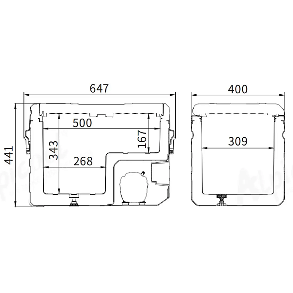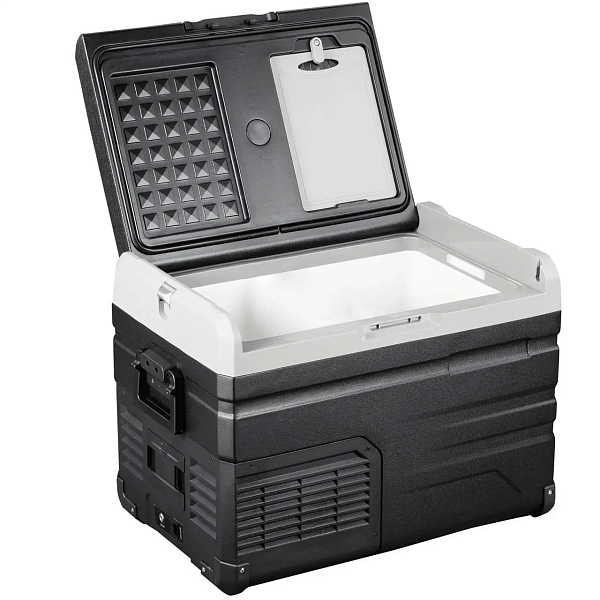Alpicool TS40 (12/24) рассчитан на использование в дороге. Его корпус изготовлен из прочного пластика, устойчивого к ударам, вибрации и солнечному нагреву. Боковые ручки облегчают переноску даже при полной загрузке. Крышка закрывается плотно и не болтается при движении. Для вашего удобства внутри камеры — две корзины для хранения продуктов.