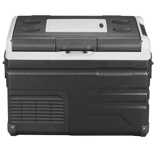На верхней панели — четыре подстаканника: можно поставить банку, бутылку или термокружку. Это удобно в пути, на стоянке или в кемпинге, когда холодильник используется как импровизированный столик.