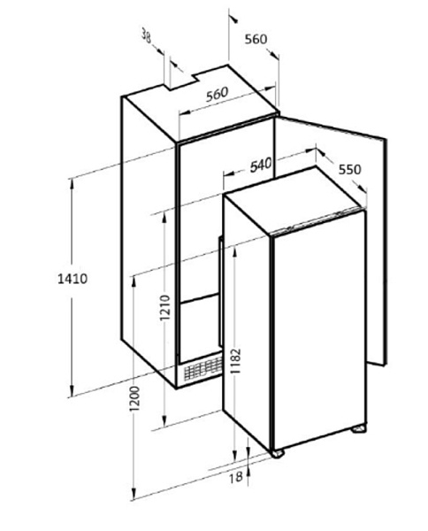 Габариты: 540 х 540 х 1220 мм. Общий объём брутто: 190 л. Тип навески фасада: скользящий. Общий объём нетто: 186 л. Объем холодильной камеры: 171 л. Объем морозильной камеры: 15 л.