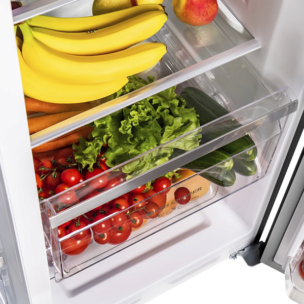 MFF177NFSB предлагает внушительный полезный объем, позволяющий с комфортом разместить все продукты, необходимые для вашей семьи. Удобные полки из прочного закаленного стекла легко регулируются по высоте, позволяя адаптировать пространство под различные размеры продуктов. Вместительные дверные полки идеально подходят для напитков, соусов и других мелочей, а специальные ящики для овощей и фруктов создают оптимальный микроклимат, сохраняя их свежесть и сочность на долгое время.