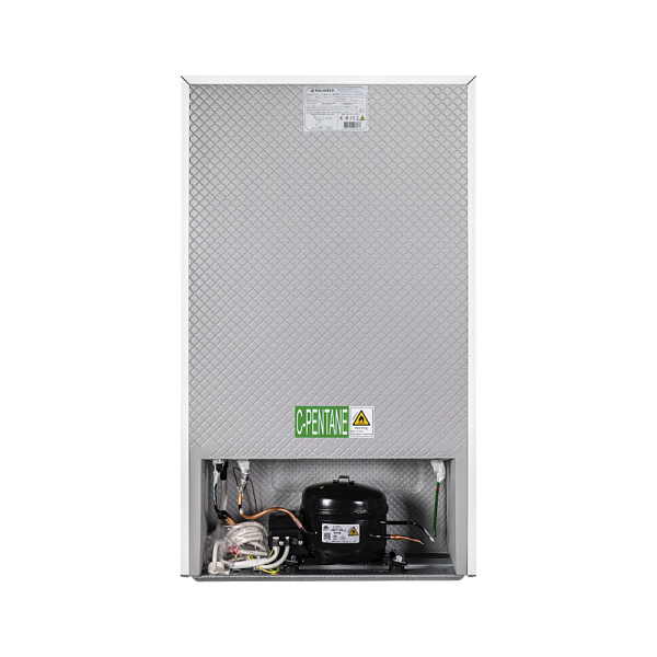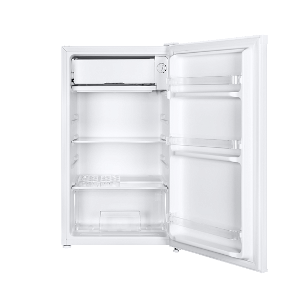 Корпус выполнен в классическом белом цвете с матовой поверхностью, устойчевой к появлению отпечатков пальцев и легко очищающейся. Эргономичная ручка обеспечивает комфорт при открывании двери, а компактные размеры позволяют разместить холодильник даже в ограниченном пространстве.