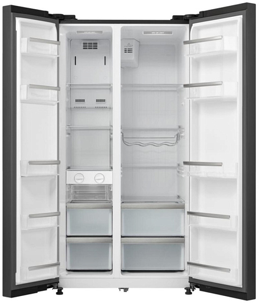 Внутри предусмотрены полки из закаленного стекла и два больших ящика для овощей и фруктов. Светодиодное освещение обеспечивает хорошую видимость содержимого. Вентилятор динамического охлаждения равномерно распределяет холод, а функции Super Cool и Super Freeze позволяют быстро охладить или заморозить продукты, сохраняя их питательные свойства. Звуковая сигнализация предупредит о неплотно закрытой дверце, обеспечивая дополнительную безопасность и контроль.