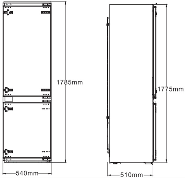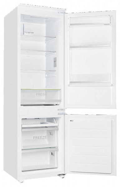 Встраиваемый прибор проще разместить в комнате, даже если общий метраж не такой уж большой. Вы можете спрятать его за декоративной панелью от мебельного фасада — советуем заранее определить нишу и заказывать панели исходя из типа крепления к двери. Способ монтажа в данной модели: скользящее крепление двери (система door sliding) Вы можете поменять направление открывания двери, так как упор переставляемый и ее можно перевесить на другую сторону. Такая функция открывает больше возможностей для установки. Холодильник с морозильником обладает всеми опциями, которые чаще всего ищут и выбирают покупатели. Стандартная конфигурация — универсальный вариант для любой квартиры. Количество камер: 2.