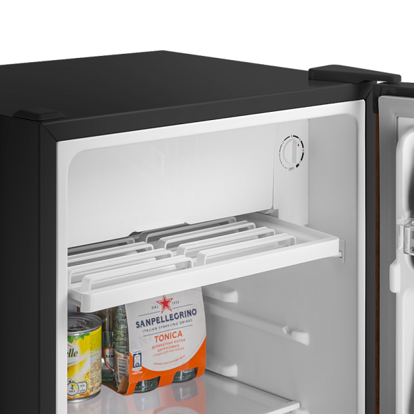 Температура регулируется при помощи механического терморегулятора, позволяющего быстро настроить оптимальный режим охлаждения. Уровень шума у MAUNFELD MFF83WD невысокий, что делает использование холодильника комфортным в любом помещении.