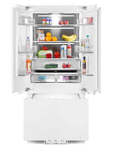 Холодильники с «французской дверцей» отличаются большой вместительностью и оригинальным дизайном. Выдвижные ящики морозильника превосходно удерживают холод, меньше подвержены поломкам и позволяют лучше разглядеть содержимое, чем распашные дверцы.