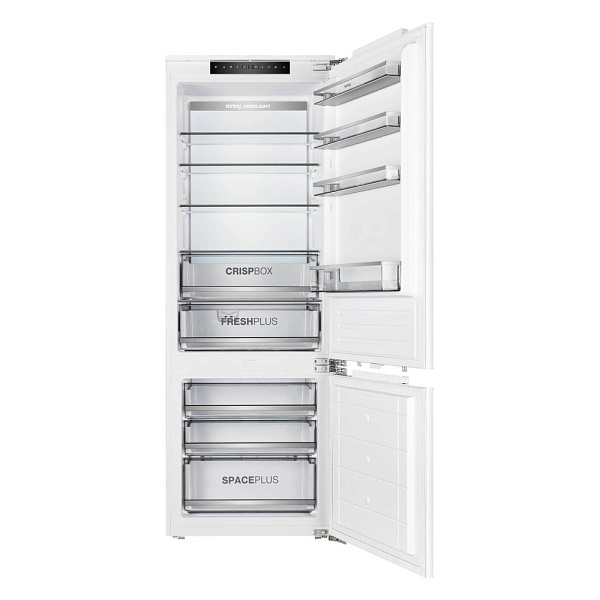 Модель поддерживает независимую регулировку температуры в холодильной и морозильной камерах, что позволяет адаптировать условия хранения под разные типы продуктов. Управление осуществляется через удобную сенсорную панель с цифровым дисплеем.