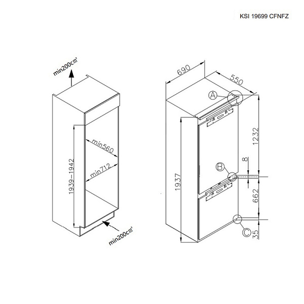 Фронтальные панели не входят в комплект — вы можете установить фасад, соответствующий стилю вашей кухни. Система жесткого крепления (door on door) обеспечивает надёжную фиксацию и плавное открывание дверцы. KSI 19699 CFNFZ — это идеальное сочетание функциональности, эстетики и гибкости в оформлении кухонного пространства.