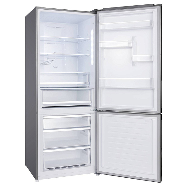 Общий объём составляет 432 литра: 324 литра — холодильная камера, 108 литров — морозильная. Это даёт возможность удобно распределить продукты и хранить их в оптимальных условиях. Система No Frost предотвращает образование льда, упрощает обслуживание и сохраняет свежесть продуктов. Светодиодная подсветка обеспечивает яркое освещение внутри камеры.