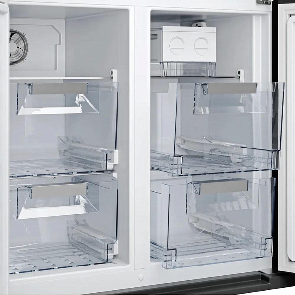 Особое внимание заслуживает зона свежести, которая позволяет сохранять продукты в оптимальных условиях и продлевает их срок хранения. Производительность замораживания составляет 13 кг/сутки. Прибор также оснащен механическим ледогенератором, что позволяет всегда иметь под рукой свежий лед.