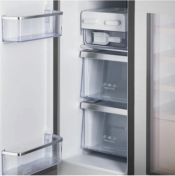 Благодаря антибактериальному покрытию, продукты дольше сохраняют свежесть и вкус. Размораживание холодильной и морозильной камеры происходит по системе No Frost, что обеспечивает их долговечность и эффективность работы.