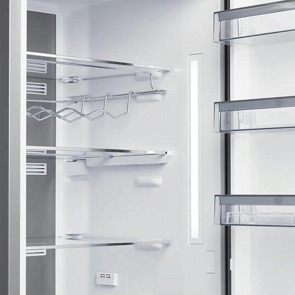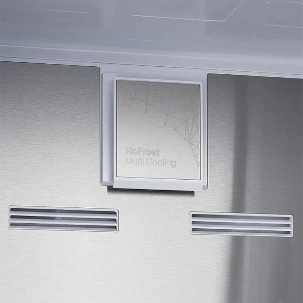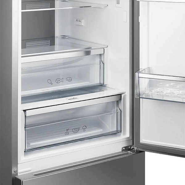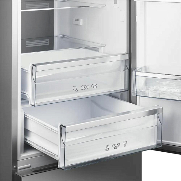 Специальная зона свежести предназначена для правильного и более длительного хранения овощей, фруктов, зелени. В ней поддерживается околонулевая температура, поэтому продукты не перемораживаются и не пересыхают. Система охлаждения этого холодильника — циркуляционная .