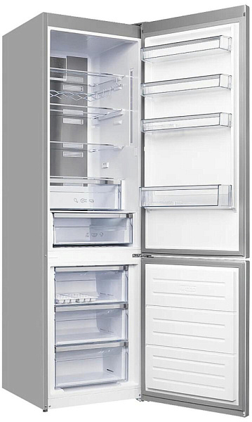 Данная модель — отдельностоящая, поэтому нужно тщательно подобрать место для ее размещения. Благодаря внушительным размерам, в частности высоте, она подходит большим пространствам — просторной кухне, еврогостиной. Вы можете поменять направление открывания двери, так как упор переставляемый и ее можно перевесить на другую сторону. Такая функция открывает больше возможностей для установки. Холодильник с морозильником обладает всеми опциями, которые чаще всего ищут и выбирают покупатели. Стандартная конфигурация — универсальный вариант для любой квартиры. Количество камер: 2.