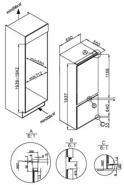 Встраиваемый прибор проще разместить в комнате, даже если общий метраж не такой уж большой. Вы можете спрятать его за декоративной панелью от мебельного фасада — советуем заранее определить нишу и заказывать панели исходя из типа крепления к двери. Способ монтажа в данной модели: скользящее крепление двери (система door sliding) Благодаря внушительным размерам, в частности высоте, она подходит большим пространствам — просторной кухне, еврогостиной. Вы можете поменять направление открывания двери, так как упор переставляемый и ее можно перевесить на другую сторону. Такая функция открывает больше возможностей для установки. Холодильник с морозильником обладает всеми опциями, которые чаще всего ищут и выбирают покупатели. Стандартная конфигурация — универсальный вариант для любой квартиры. Количество камер: 2.