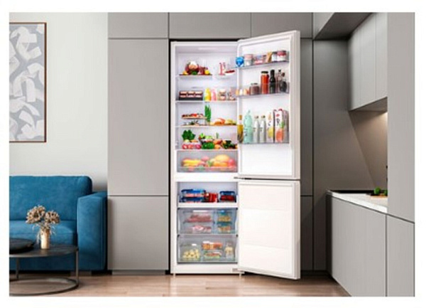 Внутреннее пространство холодильника организовано максимально эффективно благодаря регулируемым полкам.