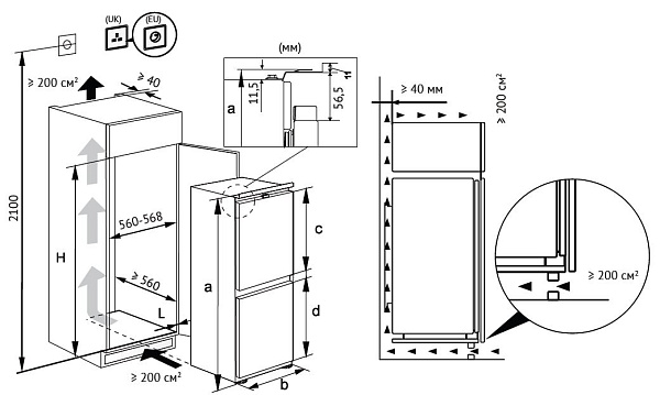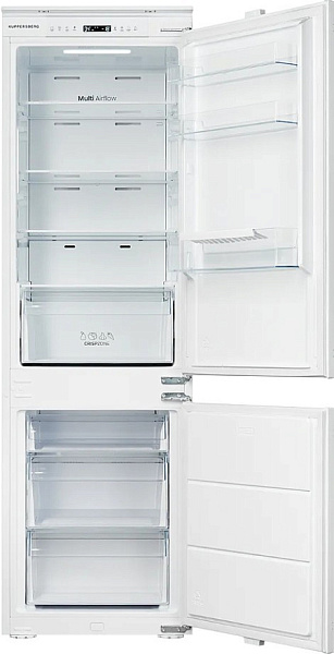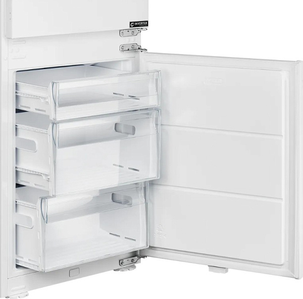 Встраиваемый прибор проще разместить в комнате, даже если общий метраж не такой уж большой. Вы можете спрятать его за декоративной панелью от мебельного фасада — советуем заранее определить нишу и заказывать панели исходя из типа крепления к двери. Способ монтажа в данной модели: скользящее крепление двери (система door sliding) Вы можете поменять направление открывания двери, так как упор переставляемый и ее можно перевесить на другую сторону. Такая функция открывает больше возможностей для установки. Холодильник с морозильником обладает всеми опциями, которые чаще всего ищут и выбирают покупатели. Стандартная конфигурация — универсальный вариант для любой квартиры. Количество камер: 2.
