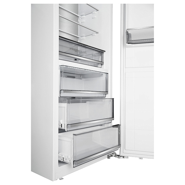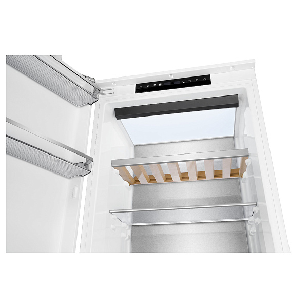 В нижней части камеры расположена зона свежести с околонулевой температурой, идеально подходящая для хранения зелени, ягод и чувствительных продуктов. Контейнер CrispBox с регулировкой влажности позволяет создать оптимальные условия для овощей и фруктов, предотвращая их пересыхание.