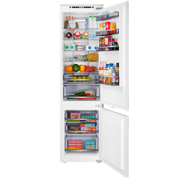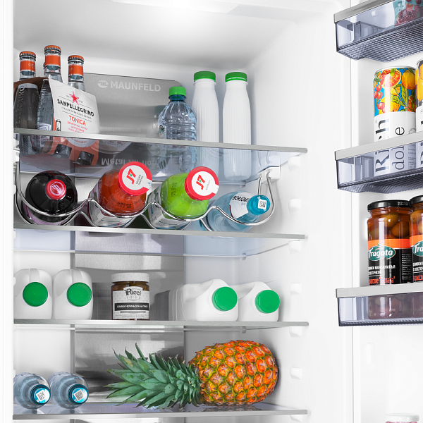 Продуманное внутреннее пространство – это гарантия вашего комфорта и удобства. Прочные полки из закаленного стекла выдерживают значительный вес, а вместительные ящики для овощей и фруктов, оснащенные системой регулировки влажности, помогают сохранить их свежесть и витамины надолго. Яркое LED-освещение обеспечивает отличную видимость каждого уголка холодильника, позволяя быстро находить нужные продукты.