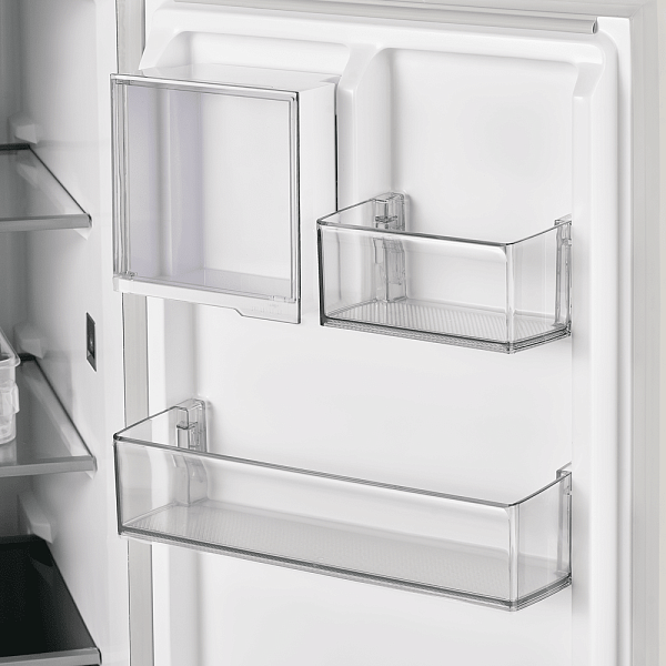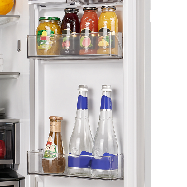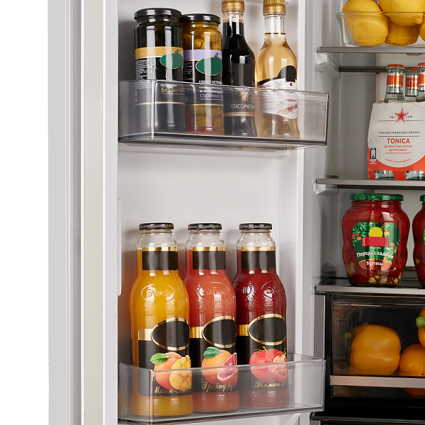 Даже бюджетные холодильники практически комплектуют стеклянными полками основную камеру, навесные полки на дверь пластиковые.