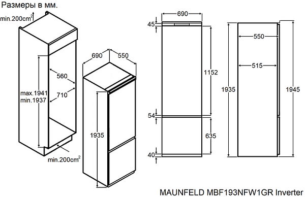 MAUNFELD MBF193NFW1GR Inverter холодильник белый