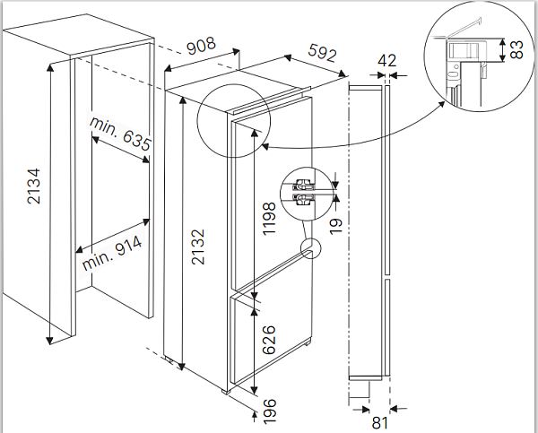 Встраиваемый прибор проще разместить в комнате, даже если общий метраж не такой уж большой. Вы можете спрятать его за декоративной панелью от мебельного фасада — советуем заранее определить нишу и заказывать панели исходя из типа крепления к двери. Способ монтажа в данной модели: жесткое крепление (система door on door) Благодаря внушительным размерам, в частности высоте, она подходит большим пространствам — просторной кухне, еврогостиной. Вы можете поменять направление открывания двери, так как упор переставляемый и ее можно перевесить на другую сторону. Такая функция открывает больше возможностей для установки. Холодильник без морозильной камеры имеет свои преимущества: больше места для хранения продуктов краткого срока годности, разнообразие полок и ящиков для овощей, фруктов, молочных изделий. Количество камер: 1.