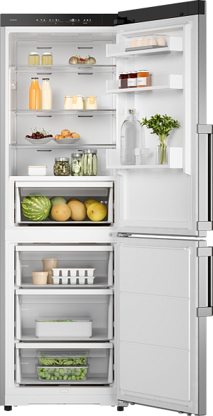 Адаптивный контроль температуры автоматически снижает температуру перед частым использованием, сохраняя свежесть продуктов на 20% дольше. Цветной TFT-дисплей обеспечивает быстрый доступ и простое управление всеми функциями устройства. Функции Super Cool и Super Freeze ускоряют процесс охлаждения при загрузке свежих продуктов. Система No Frost устраняет необходимость в разморозке, а также экономит электроэнергию.