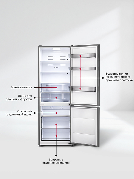 Два отделения с полезным объемом 409 литров дают возможность хранить все блюда и напитки на удобном уровне. Внутреннее пространство холодильника организовано максимально эффективно благодаря регулируемым полкам.