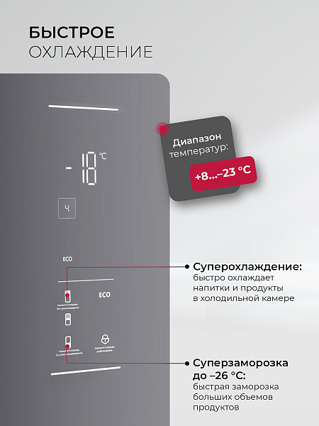 LED-лампы обеспечивают яркий свет, помогая вам быстро найти все, что нужно. Электронная панель управления делает настройку параметров интуитивно понятной. А перенавешиваемые двери делают холодильник LEX LKB185 универсальным для любой кухни.