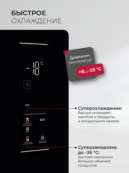 LED-лампы обеспечивают яркий свет, помогая вам быстро найти все, что нужно. Электронная панель управления делает настройку параметров интуитивно понятной. А перенавешиваемые двери делают холодильник LEX LKB201 универсальным для любой кухни.