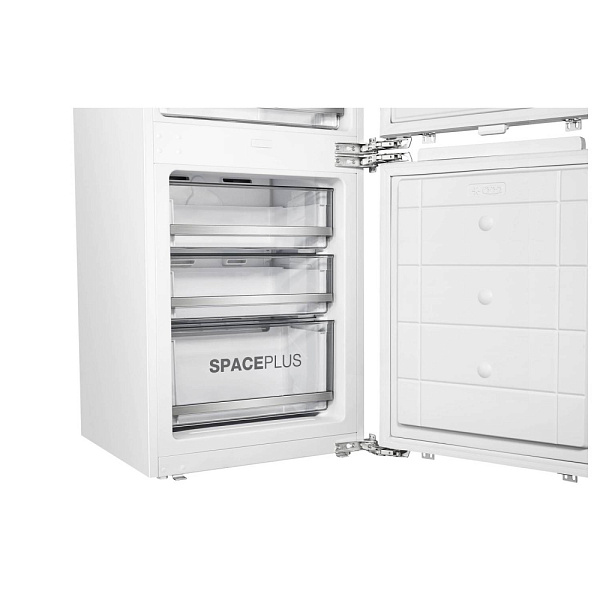 Модель оснащена системой Full No Frost в обоих отделениях, что избавляет от необходимости ручного размораживания и помогает сохранить свежесть продуктов. Динамическое охлаждение обеспечивает равномерное распределение температуры, а зона свежести и контейнер CrispBox с регулировкой влажности создают идеальные условия для хранения овощей, фруктов и зелени.
