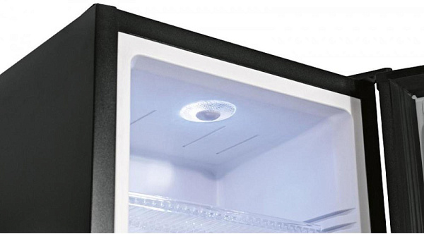 Внутри две переставляемые полки для хранения из пластифицированного металла и два отсека на двери, которые тоже регулируются по высоте. Благодаря такой вариативности вы можете разместить как маленькие банки, так и высокие бутылки с напитками.