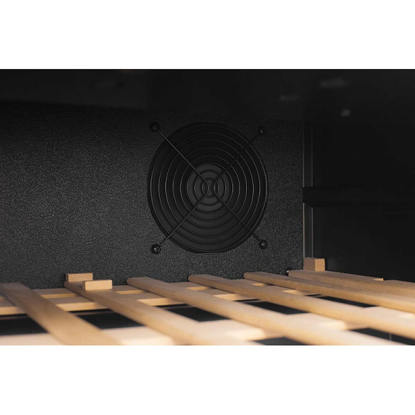 - Внутренний вентилятор способствует равномерному распределению температуры по всему объему шкафа.