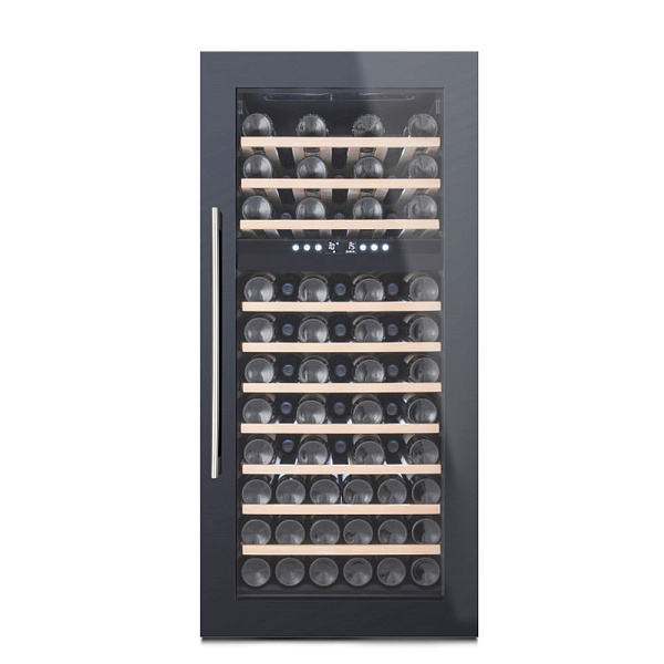 Добавили мы и немного уникальности к данной модели. Разработали две, полностью настраиваемые температурные зоны. Теперь можно одновременно, в одном месте хранить разные сорта вин. Но стоит учесть определенные моменты, что не рекомендуется устанавливать в нижней зоне температуру выше, чем в верхней зоне! Данная модель предназначена только для встраивания.