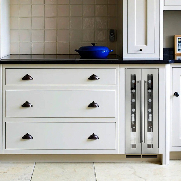 Стеклянная дверь — дополнительный изящный штрих к общему дизайну модели. Специальное покрытие защищает вино от влияния ультрафиолетовых лучей, которые проникают, если шкаф находится в со