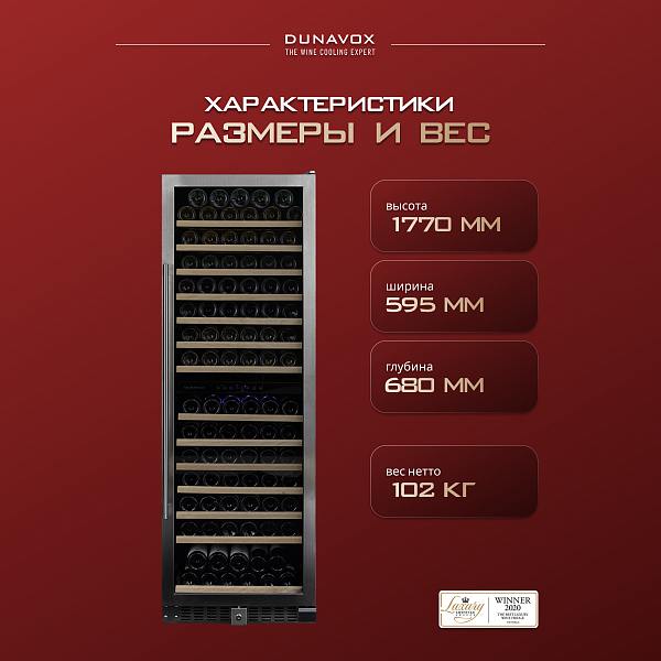 - Регулируемый температурный режим каждой зоны шкафы в диапазоне от +5°C до +22°C подходит для хранения большинства сортов вин.